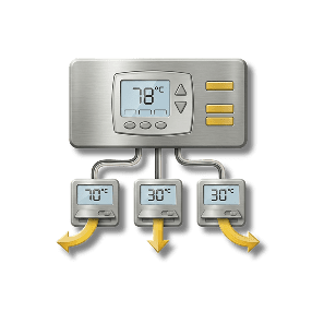 A setup that uses motorized dampers in your ductwork and multiple thermostats to let you control the temperature of different areas (zones) of your house independently.